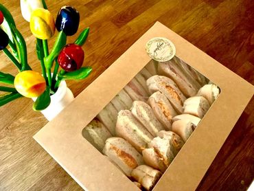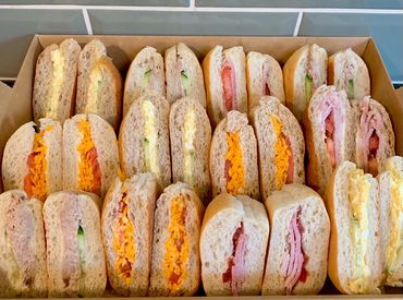 Closed sandwiches in our freshly baked soft white & brown baps.